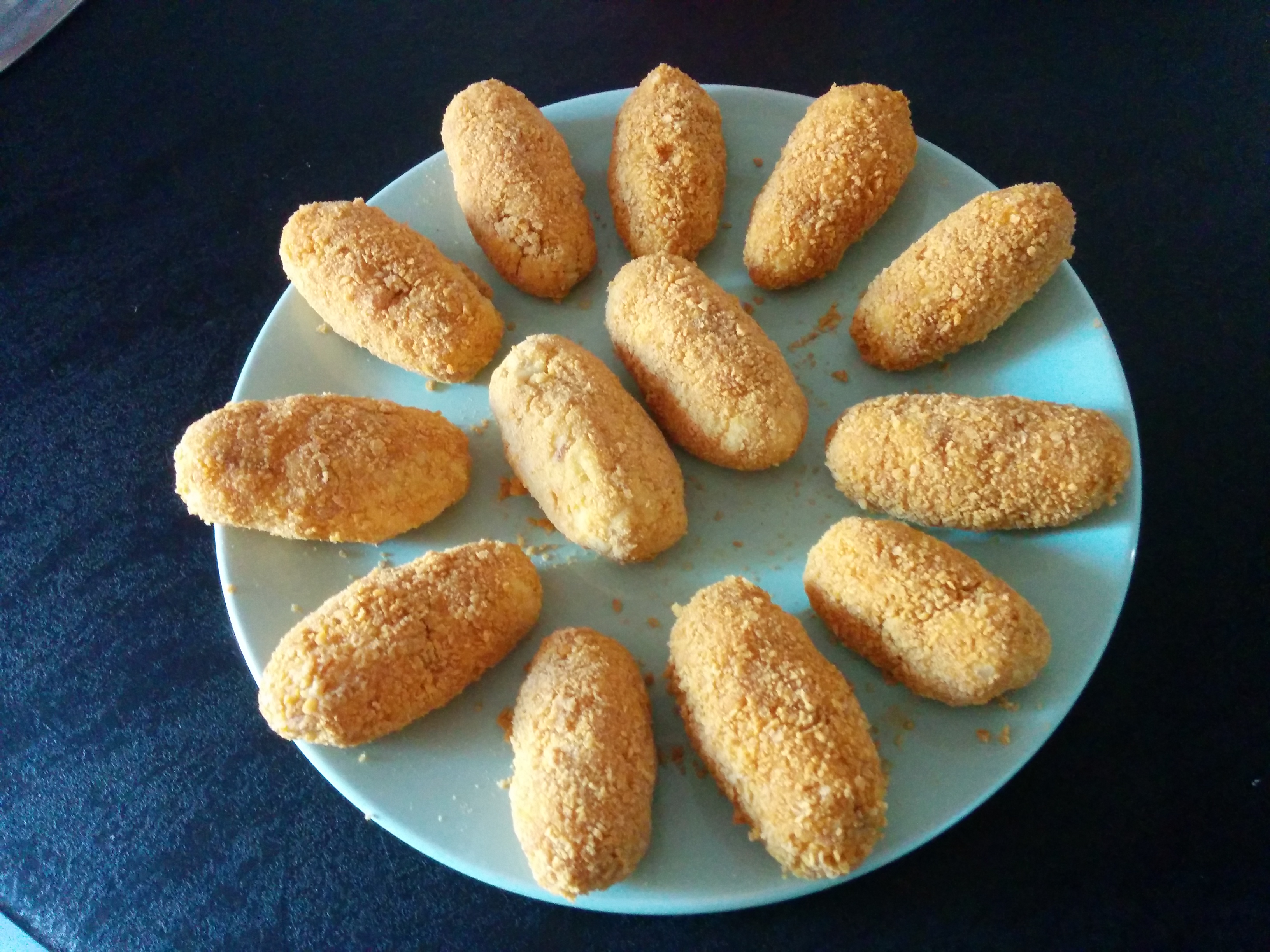 Y ¡voilá! Ya tenemos croquetas de nueva generación jeje. Los comensales no dejaron ni una y les gustaron, así que os recomiendo que las probéis, que experimentéis a hacerlas de boletus o pollo… pero sobre todo que me deis vuestro feedback cuando las hagáis.
