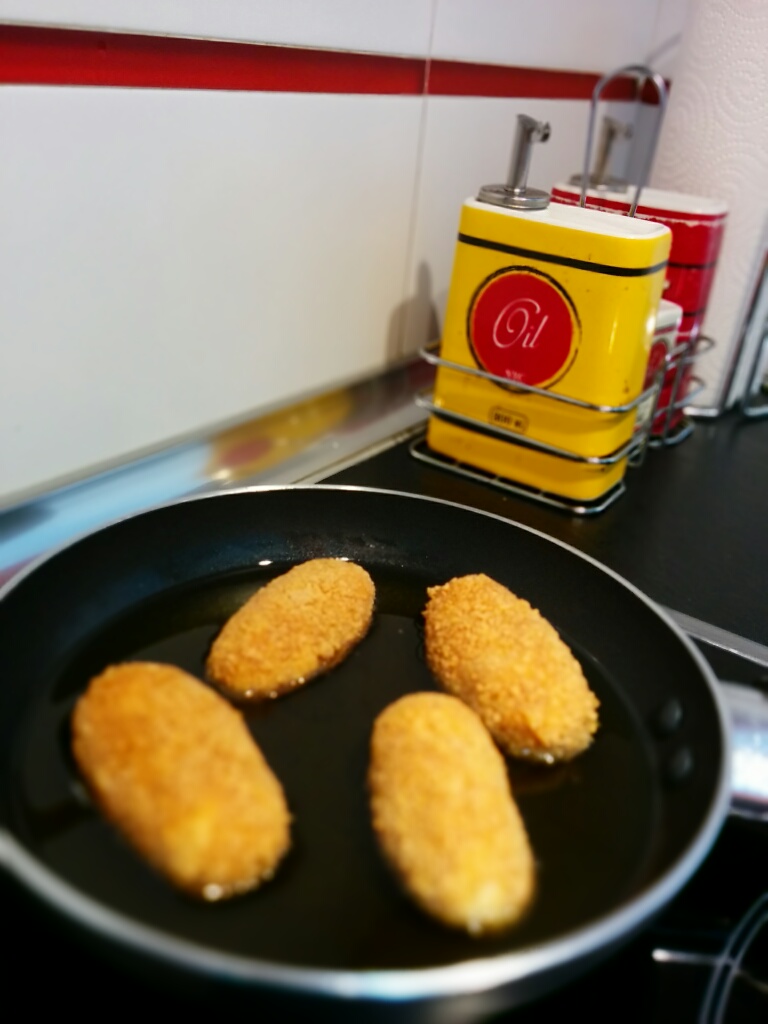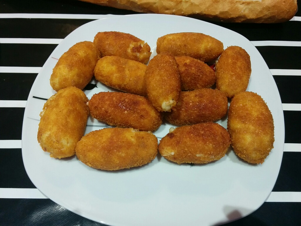 ¡Que me lio! Después de un duro entreno, el viernes invite a mis compañeros de entrenamiento a cenar, y uno de ellos adora las croquetas, cosa que me llevo a experimentar en los fogones. Como se de muchos que están en una situación similar, comparto mi receta con vosotros, 100% sin gluten (lástima que el preparado de cocina lleve un poco de mantequilla y no pueda asegurar que es sin lactosa también).